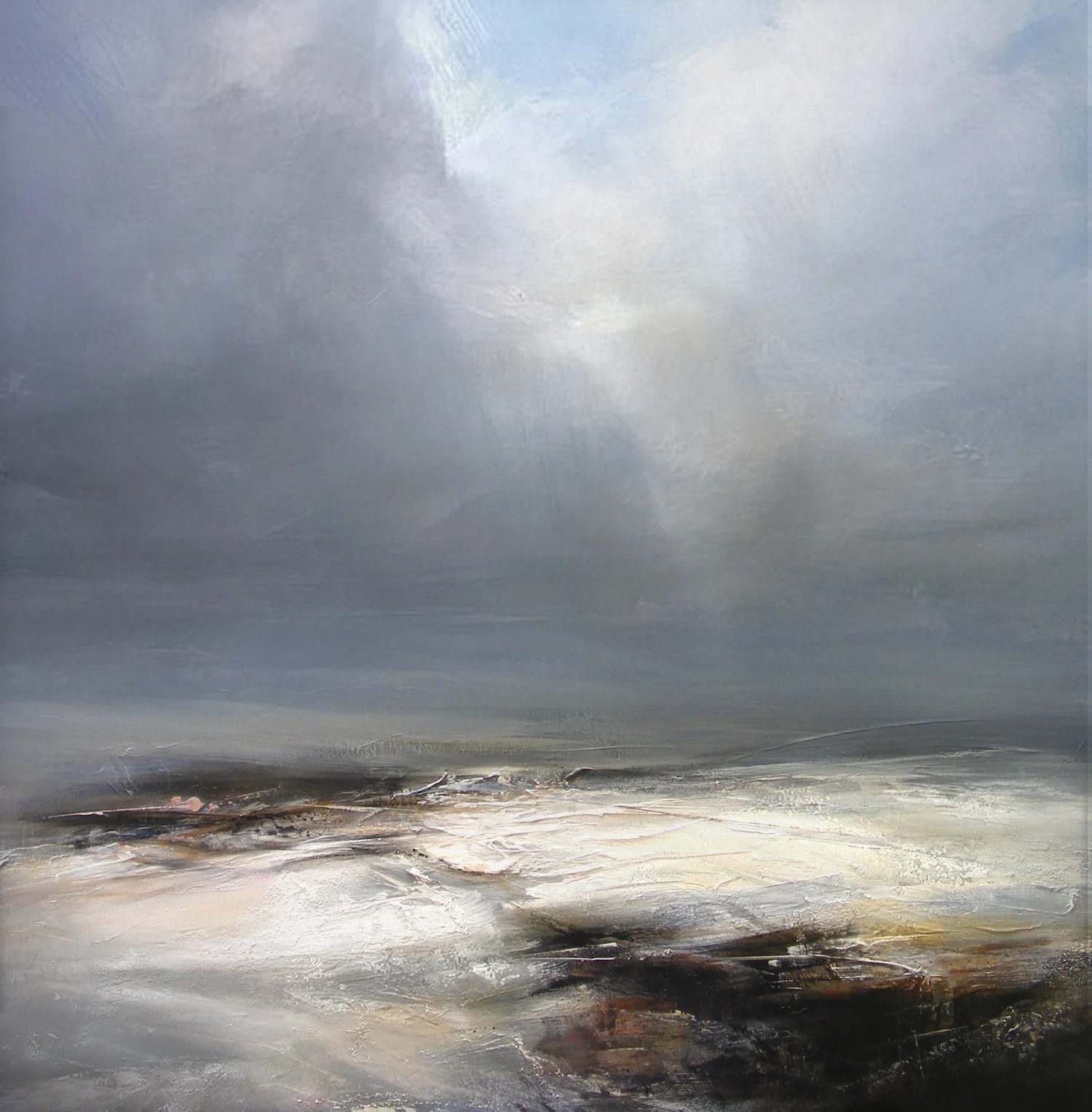 Vast panoramic expanses, dark chasms, distant pools of light, icy wastelands, raging seas and brewing storms – Neil depicts landscapes forged by time and the elemental forces of nature.